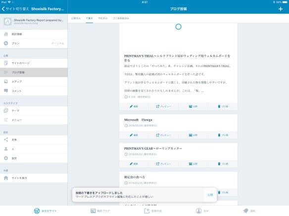 そこへきて、ここでスマートキーボードで鼻息荒くなっているところへ、ワードプレスアプリのアップデート!オフライン対応!
