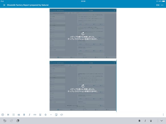 オフラインで画像をiPad内の写真を挿入しようとすると、この表示。
