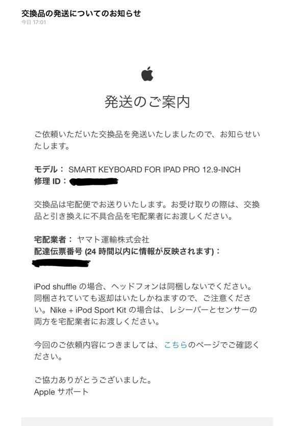 修理ってことは、smart keyboardがしばらく使えなくなるのか。。。