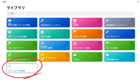 「ショートカット」アプリを開き、「ショートカットを作成」を選択。