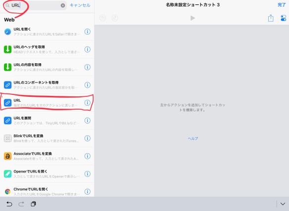 検索窓に「 URL」と打ち込み、「URL(指定されたURLを次のアクションに渡します)」を選択。