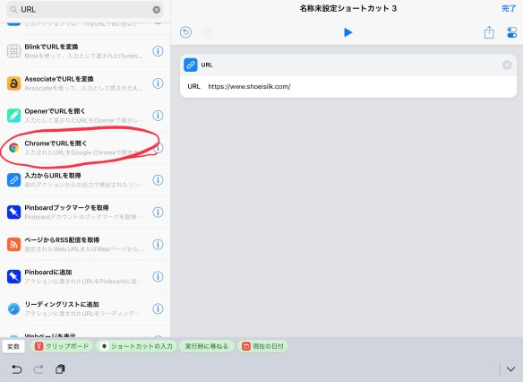 また検索窓に「URL」と打ち込み、「ChromeでURLを開く」を選択。