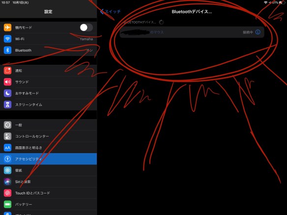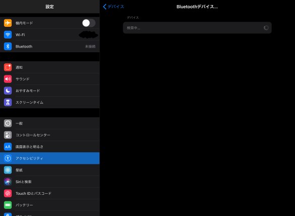 まずはいつものスピーカーやApple Pencilを使う時と同じように、Bluetooth設定からやってみた。