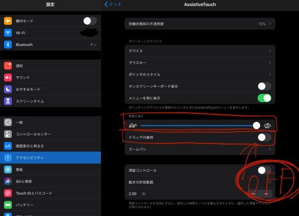 「AssistiveTouch」の「軌跡速さ」で動きを調整しましょう。
