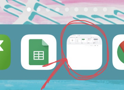 先ほどのブラウザ版を左上のスプレッドシートアイコンをクリックして、スプレッドシートのポータル画面?(ファイルが並んでいる画面)にしてから、Safariの展開ボタンから「ホーム画面に追加」を選んでアプリっぽく他のアプリと並べておく。