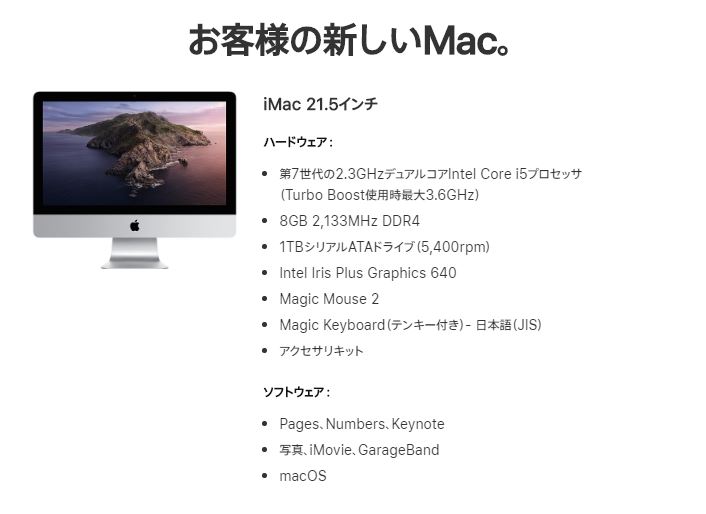(この記事執筆時点2020年4月でも最下位iMacは購入したものと同じ構成)