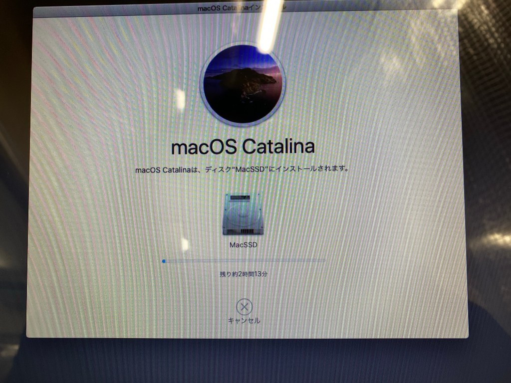 作業としては、そもそもダメ元なマシンだし、重要なデータは入っていない(というか一回諦めたデータなので自分の中でそれほど重要ではなかったことに気が付いた。。。)のでHDDをバックアップすることもせず、単純に、元から付いている内臓HDDを外し、そこへSSDを装着。続いて、光学ドライブを外す。その跡地に、先ほどの内臓HDDをマウンタに取り付けたものを装着。空のSSDを起動ディスクとするため、command+Rを押しながら電源ボタンで起動、ディスクユーティリティを選択、SSDを初期化し、macOSをインストール。