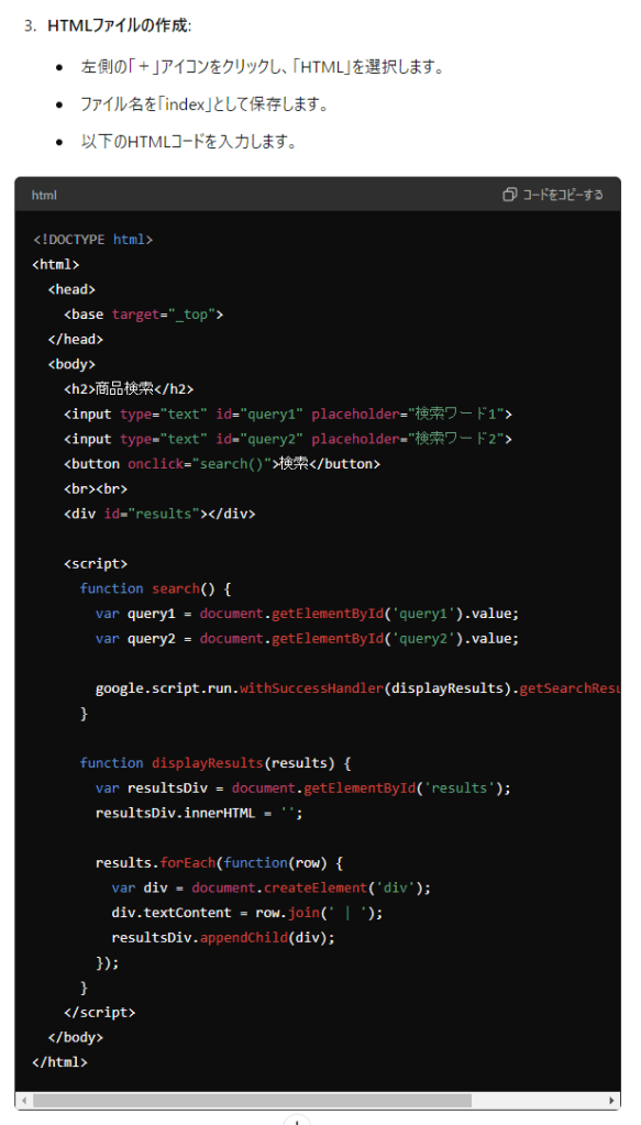 Googleスプレッドシートでインクリメンタルサーチを実装してみた~ChatGPTでサクッと解決!!~後編~ウェブアプリ化して公開する」への4件のフィードバック