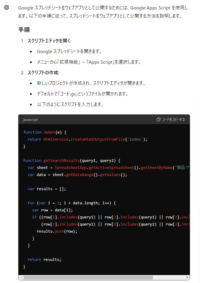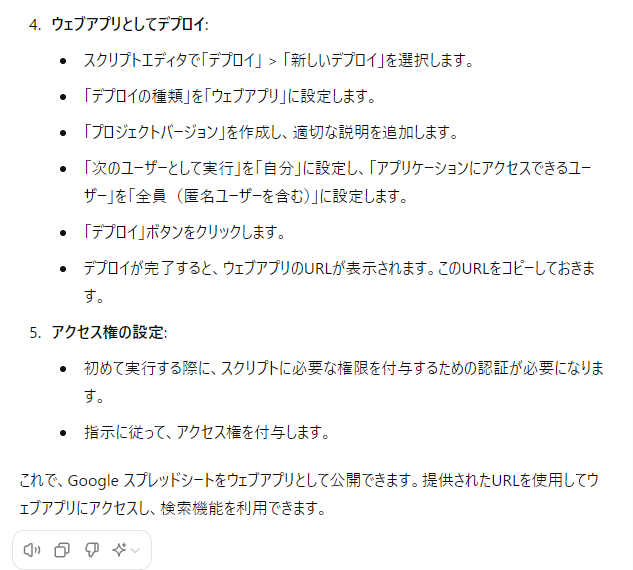 Googleスプレッドシートでインクリメンタルサーチを実装してみた~ChatGPTでサクッと解決!!~後編~ウェブアプリ化して公開する