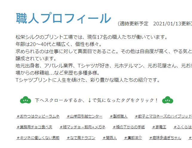 弊社公式サイトの方の職人紹介ページを現在の配属に更新しました。